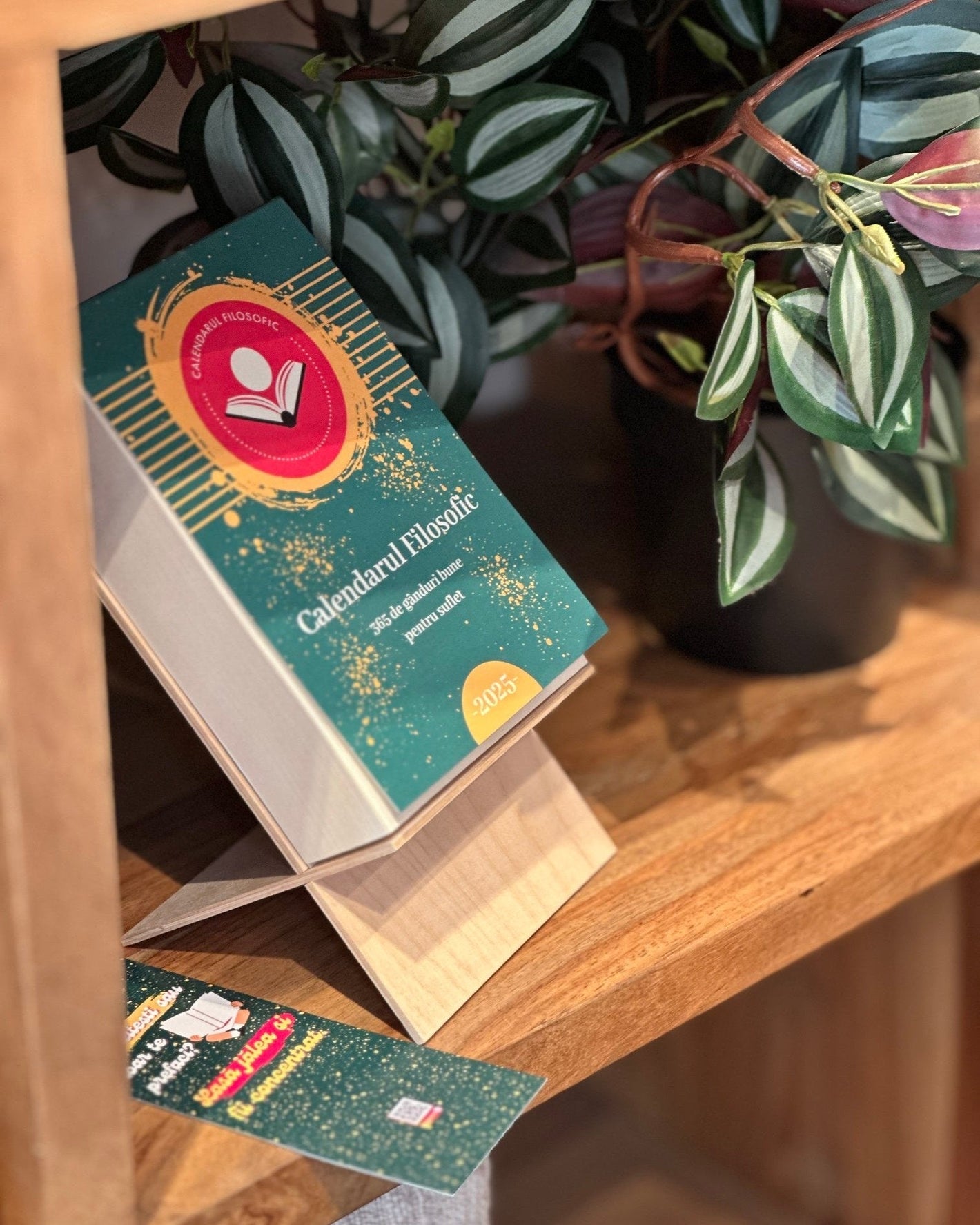Desigur, fiecare calendar include blocul de foi, suportul din lemn și un mic cadou din partea noastră, acest cadou este un semn de carte creativ, unic și distractiv.